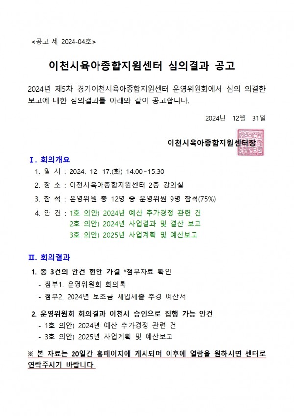 공개자료 | 2024-04 운영위원회 심의결과 공고