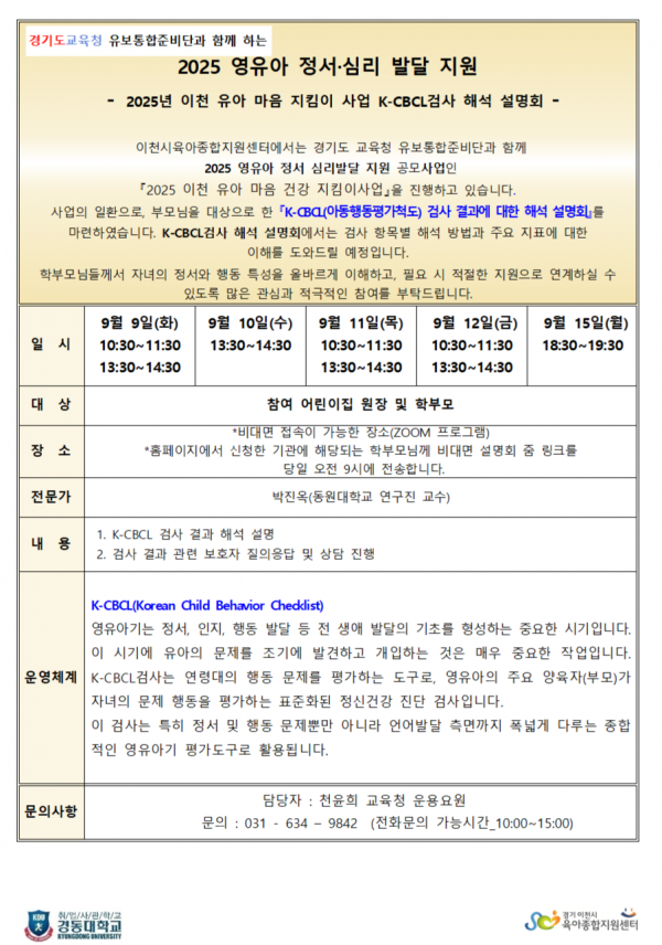 2025년 이천 유아 마음 지킴이 사업 K-CBCL검사 해석 설명회[야간]