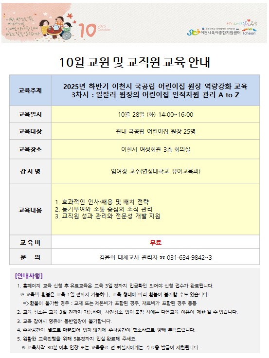 2025년 하반기 이천시 국공립 어린이집 원장 역량강화 교욱 3차시 : 일잘러 원장의 어린이집 인적자원 관리 A to Z