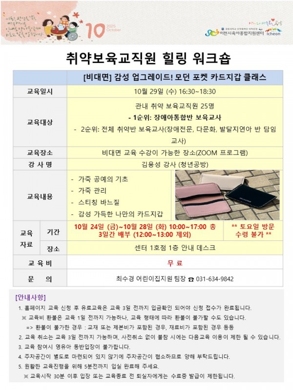 본 교육은 관내 취약 보육교직원 대상 프로그램이므로 신청 기준에 대해 안내드립니다.