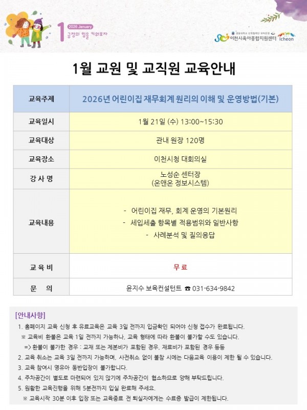 | 장소 | 이천시청 1층 대회의실 | 대상 | 관내 원장 및 회계 담당자 |