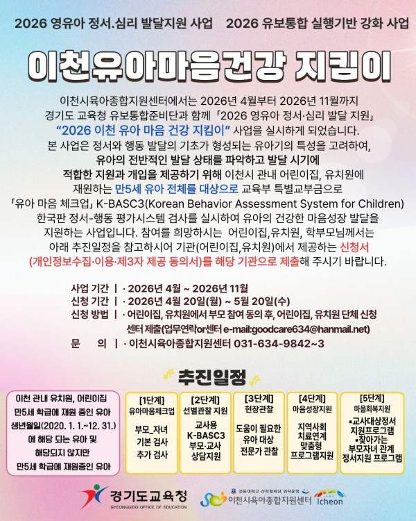 [2026 영유아 정서·심리 발달 지원 사업] 2026 이천 유아 마음 건강 지킴이