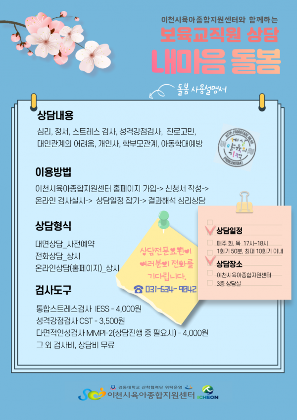 * 보육교직원상담(검사비 무료진행)