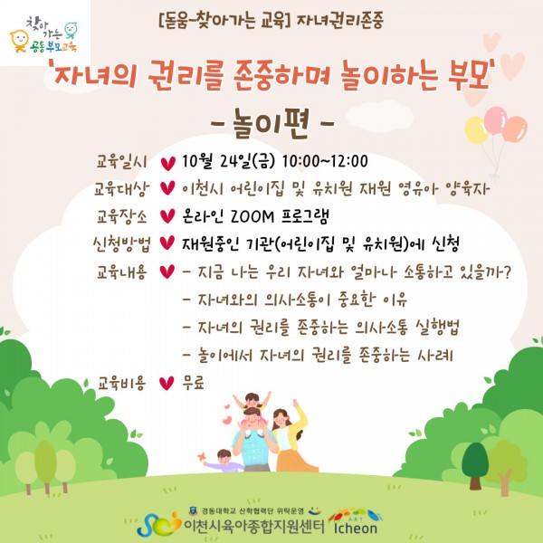 ☆[돋움-찾아가는 교육] 자녀권리 존중'자녀의 권리를 존중하며 놀이하는 부모'(놀이편)