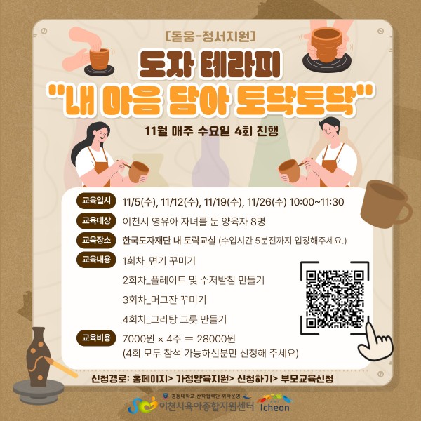| 장소 | 한국도자재단 내 토락교실 | 대상 | 관내 영유아 자녀를 둔 양육자 |