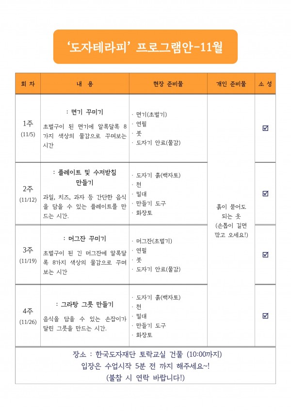 11/5, 11/12, 11/19, 11/26(매주 수) 10:00~11:30