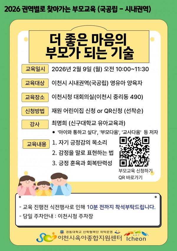 [권역별로 찾아가는 부모교육(시내권역-국공립)]- 더 좋은 마음의 부모가 되는 기술