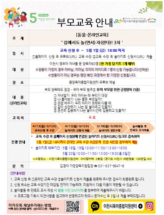 1. 아동학대 예방 부모교육 (3종) 수강 (4/13~5/1)