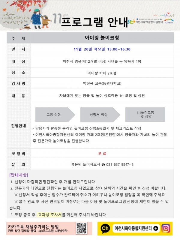 구분 | 놀이코칭 | 진행현황 | ![]() |