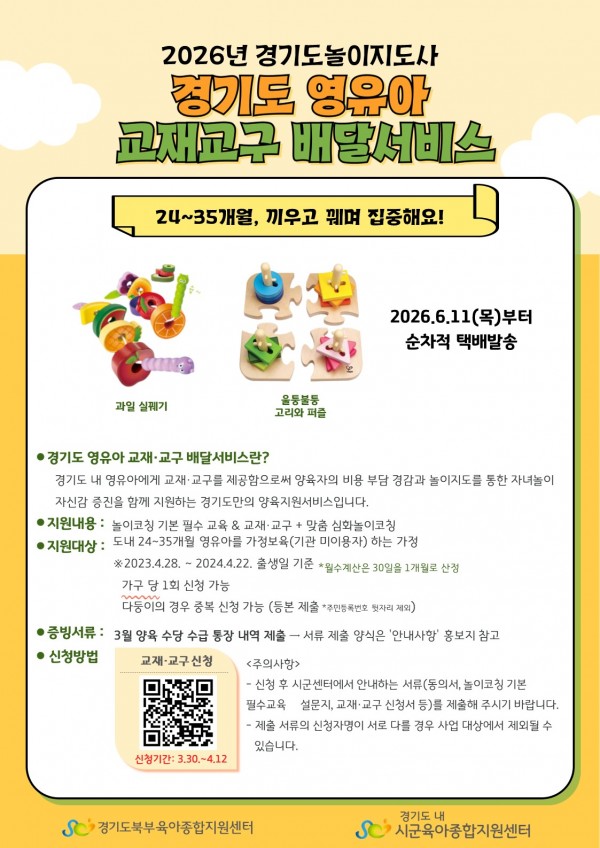 [경기도놀이지도사]영유아 교재.교구 배달 서비스
