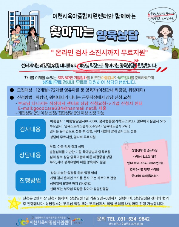이천시육아종합지원센터는 부모_자녀 관계를 돕고자 찾아가는 양육상담을 진행합니다.