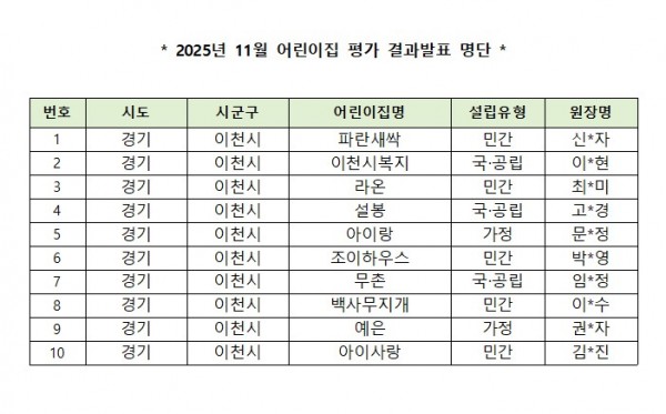 평가제 | 2025년 11월 평가결과 어린이집 명단