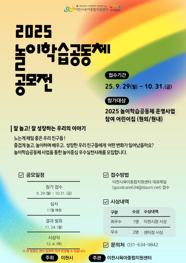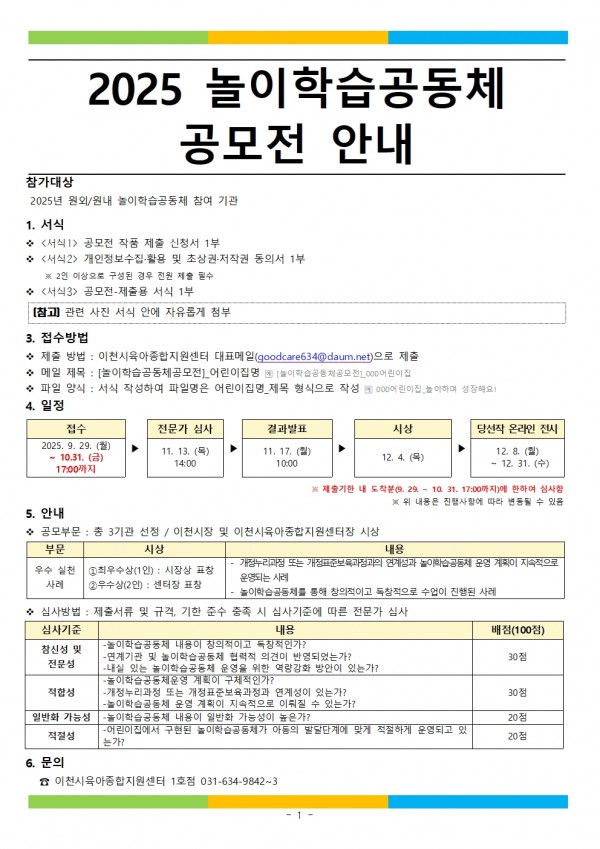 붙임1 [이천시육아종합지원센터]놀이학습공동체 공모전 안내 및 서식001.jpg (655.2K) 0회 다운로드 DATE : 2025-10-02 10:40:51