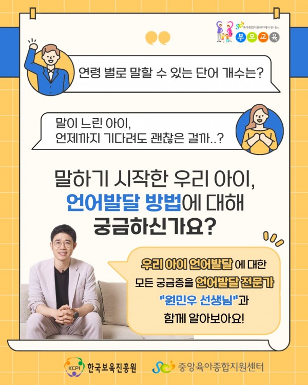 영유아 언어발달에 대한 걱정과 고민 해결을 위해 "언어발달 전문가" 원민우 교수님과 함께 우리 아이 언어발달에 대한 모든 것을 알려드립니다!