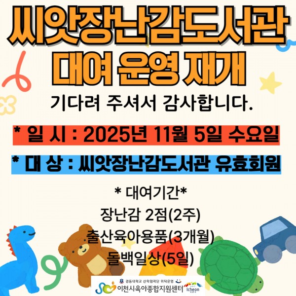 센터 | 씨앗 장난감 도서관 대여 운영 재개 안내