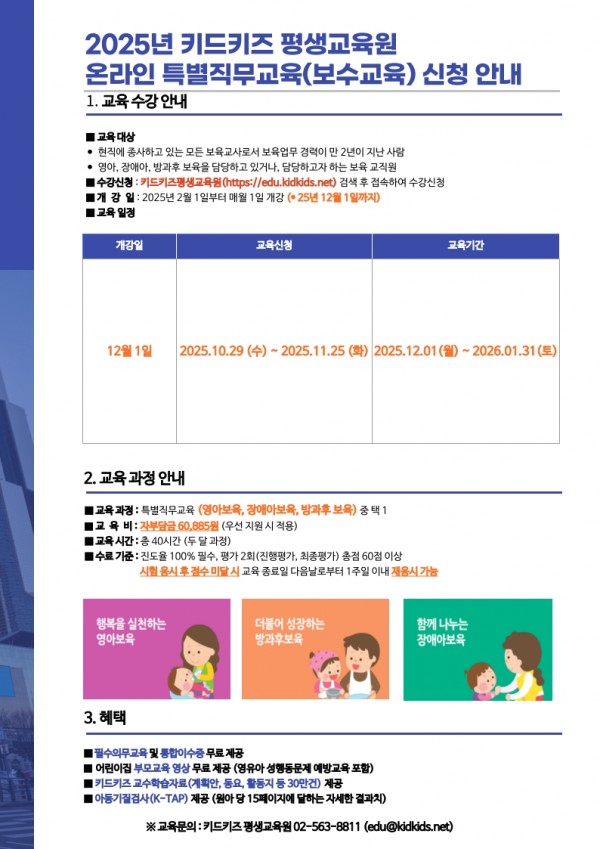 보수교육 | [키드키즈 평생교육원] 보육교직원 온라인 특별직무교육 2025년 12월 개강반 안내