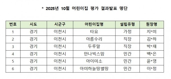 평가제 | 2025년 10월 평가결과 어린이집 명단