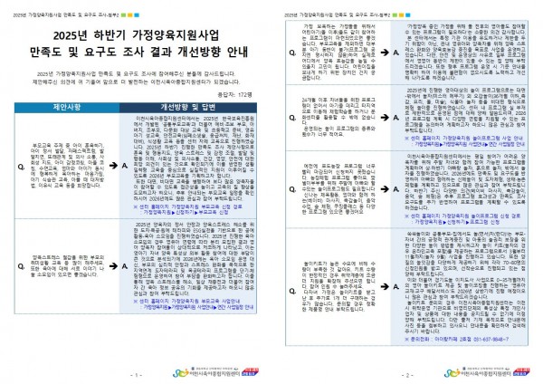 2025년 하반기 가정양육지원사업 만족도 및 요구도 조사 결과 개선방향 안내드립니다.