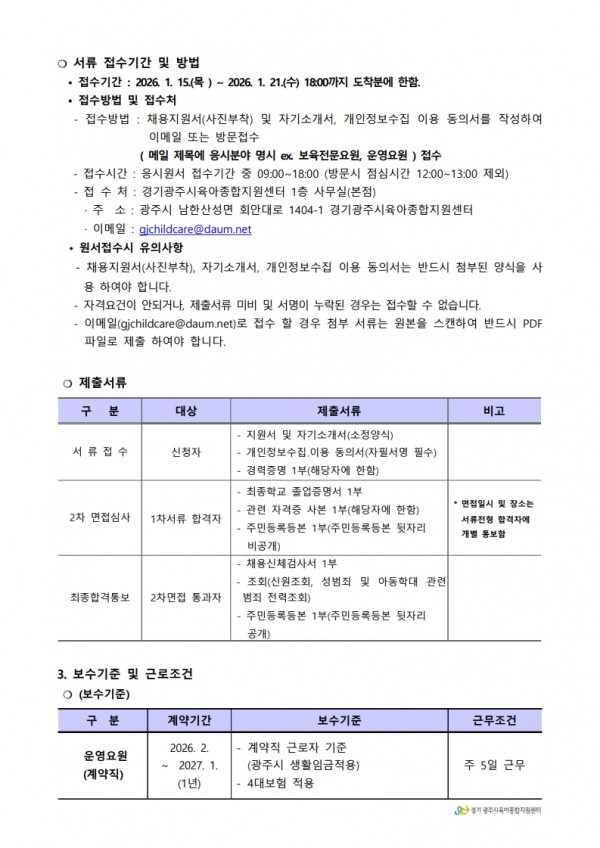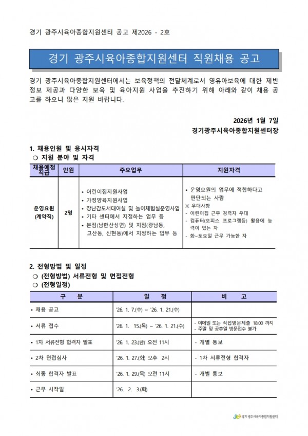 유관기관 | 경기 광주시육아종합지원센터 직원 채용 공고 2호