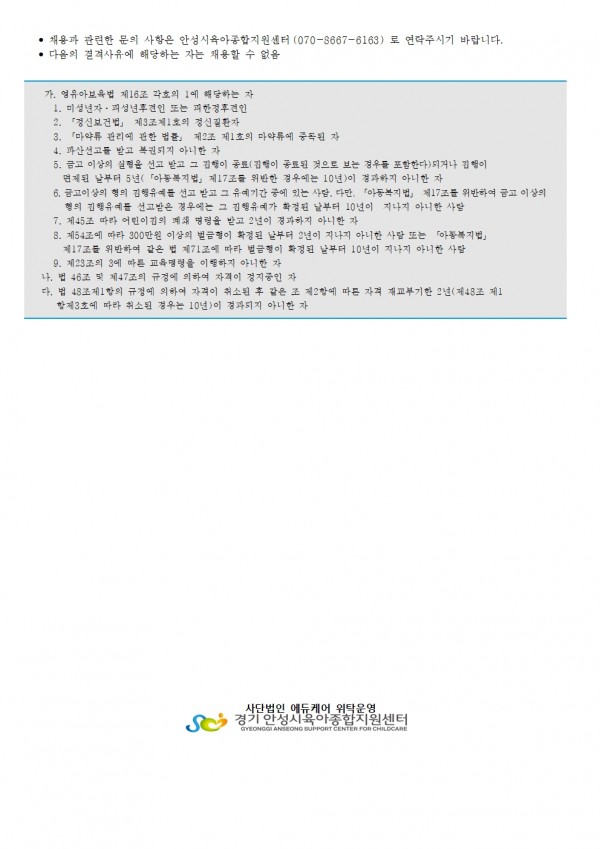 유관기관 | 안성시육아종합지원센터 직원 채용 공고(안전관리자_재공고)