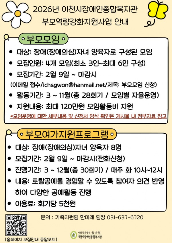 유관기관 | [이천시장애인종합복지관] 2026년 부모역량강화지원사업 참여자 모집홍보