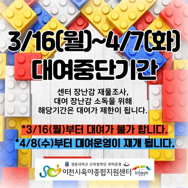 ★3/16(월)~4/7(화) 장난감 대여운영 중단★