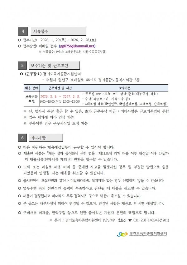유관기관 | 경기도육아종합지원센터 인력 채용 공고(기간연장)