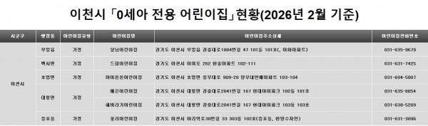 이천시 | 2026년 2월기준 0세아 전용 어린이집 현황(이천시)