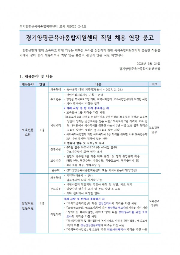 붙임1. 제2차 양평군육아종합지원센터 직원채용 연장 공고문-4차보육전문요원,발달지원전문요원001.jpg