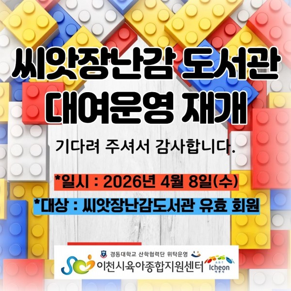 센터 | 씨앗 장난감 도서관 대여 운영 재개 안내