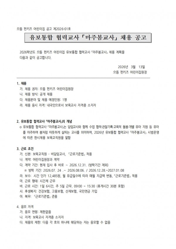 | 어린이집유형 | 민간 | 모집인원 | 1 명 |