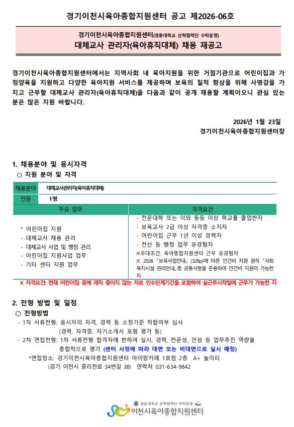 공고 제2026-06호_이천시육아종합지원센터_대체교사관리자육아휴직대체채용_재공고.pdf