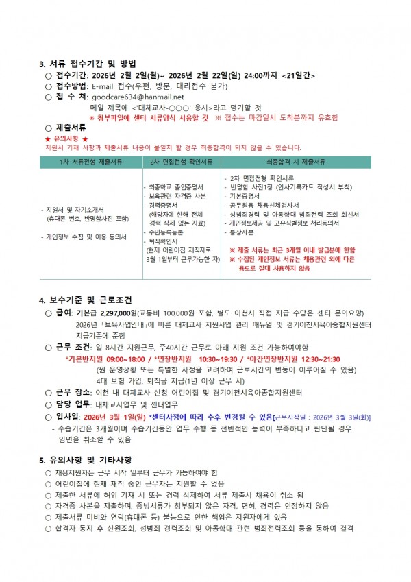 | 이메일 | goodcare634@hanmail.net | 자격사항 | 보육교사 자격증 2급 이상 소지자 |