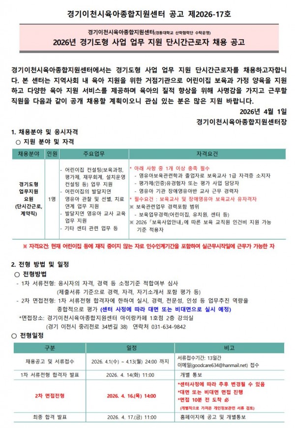 공고 제2026-17호_경기이천시육아종합지원센터_경기도형 사업 업무 지원 단시간 근로자_채용 공고.pdf