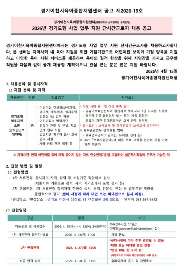공고 제2026-19호_경기이천시육아종합지원센터_경기도형 사업 업무 지원 단시간 근로자_채용 재공고.pdf