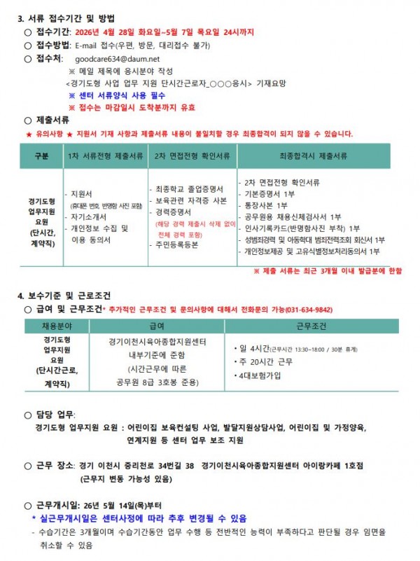 작성자 : 이천센터 | 작성일26-04-28 11:53 | 조회9회 | 댓글0건공고 제2026-22호 경기도형 사업 업무 지원 단시간 근로자 채용 3차 공고