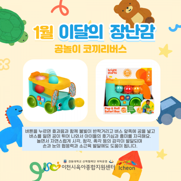 이달에 소개할 장난감은 공놀이 코끼리버스 입니다.
